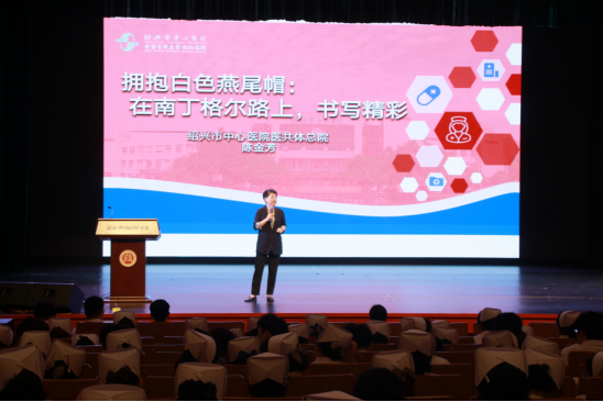绍兴市中心医院护理部主任、主任护师、硕士生导师陈金芳主任以《拥抱白色燕尾帽:在南丁格尔路上,书写精彩》为题,结合自身从临床一线到护理管理的成长经历,阐述了护理工作的价值与使命,鼓励同学们坚守初心,不断提升专业能力与人文素养。
