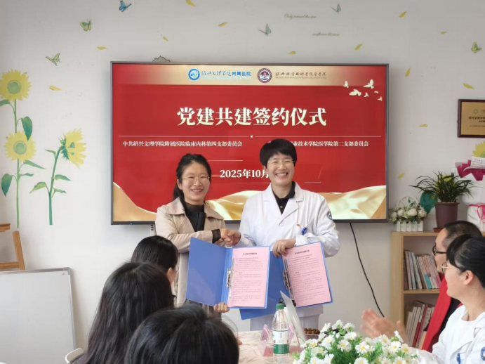 10月31日下午,我院第二党支部与绍兴文理学院附属医院临床内科第四党支部举行党建联建签约仪式,这是我院与绍兴文理学院附属医院“党建引领全面共建”框架下的具体落实和基层实践。